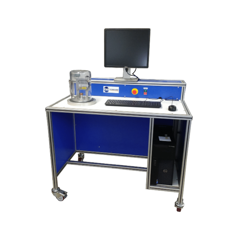 This test bench is used to test and qualify aneroid metal bellows by accurately measuring the mechanical deformation of the sensing element under different pressures.