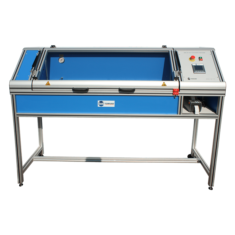 Le Banc de test pour Flexibles aéronautiques permet aux Ateliers MRO de réaliser de manière semi-automatique des tests d’épreuve et de fuite à l’eau sur de nombreux flexibles